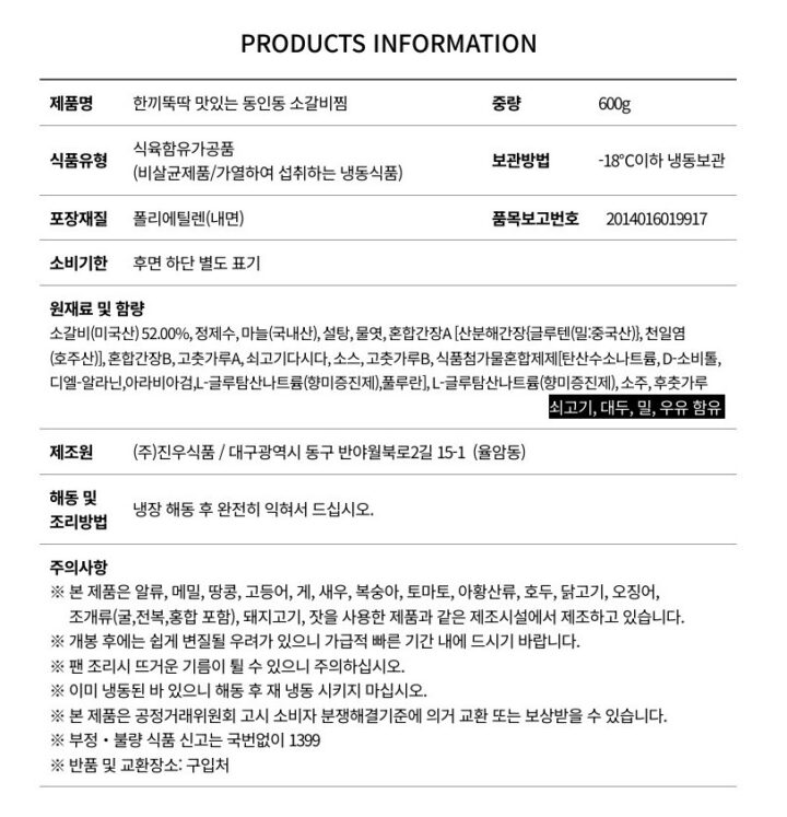 밥도둑🍚동인동식 “소”마늘찜갈비600g[12월8일/월요일수령]